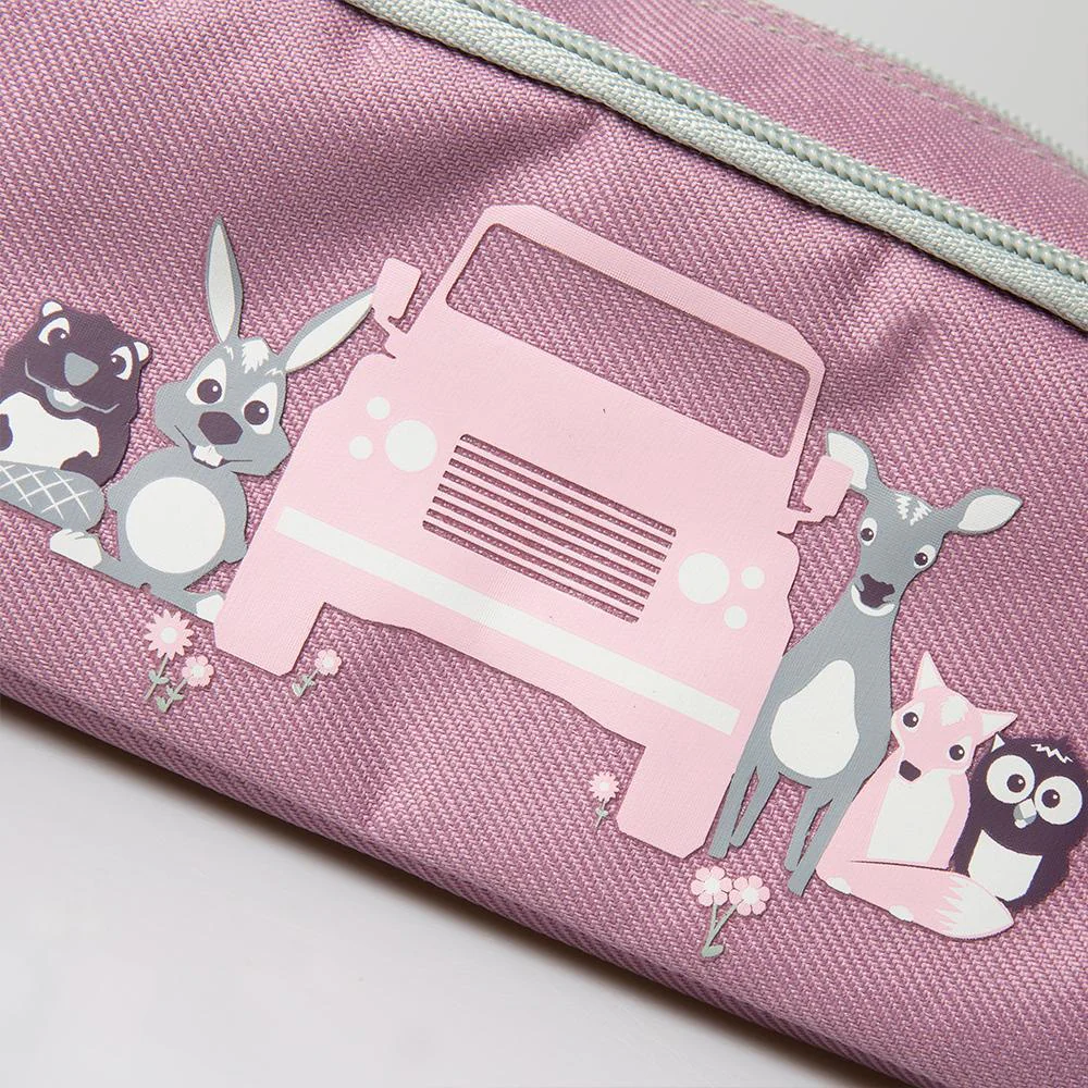 Let your little one store their stationery in this vibrant pink pencil case to help make sure they have everything they need for their lessons right at their fingertips. Made from durable fabric with 2 spacious zipped compartments and a front pocket, it is a great kids' pencil case to help store all their stationery essentials. With bright pink lining contrasting against the outer darker pink, this case is stylish yet simple, while the printed Land Rover logo will make a statement in the classroom. The Land Rover Off Road range also features lunch boxes and rucksacks, have your child prepared for school with coordinating accessories.